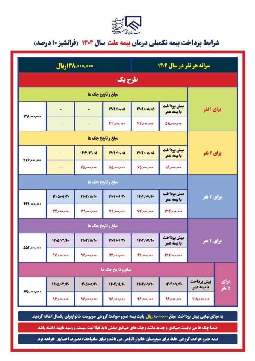 طرح های بیمه تکمیلی درمان و شرایط پرداخت سال 1404 بیمه ملت