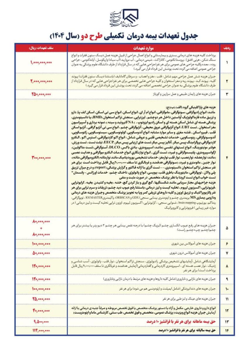 طرح های بیمه تکمیلی درمان و شرایط پرداخت سال 1404 بیمه ملت